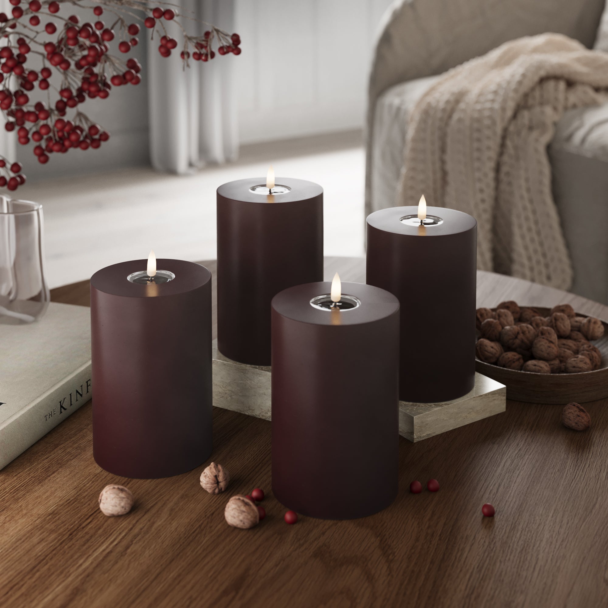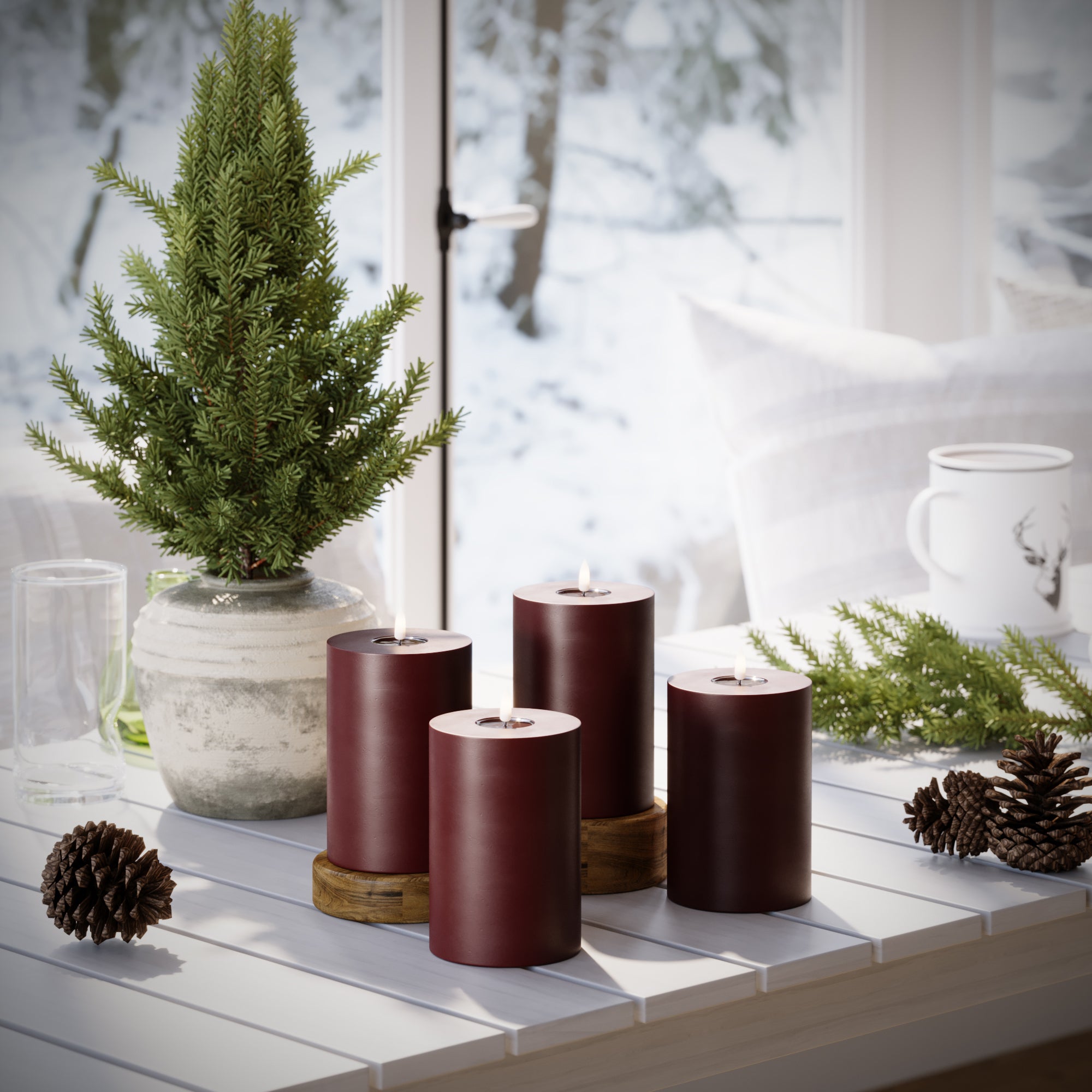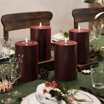 LED-Blockkerzen Ø 10 x 15 cm Burgunderrot – 4 Stück