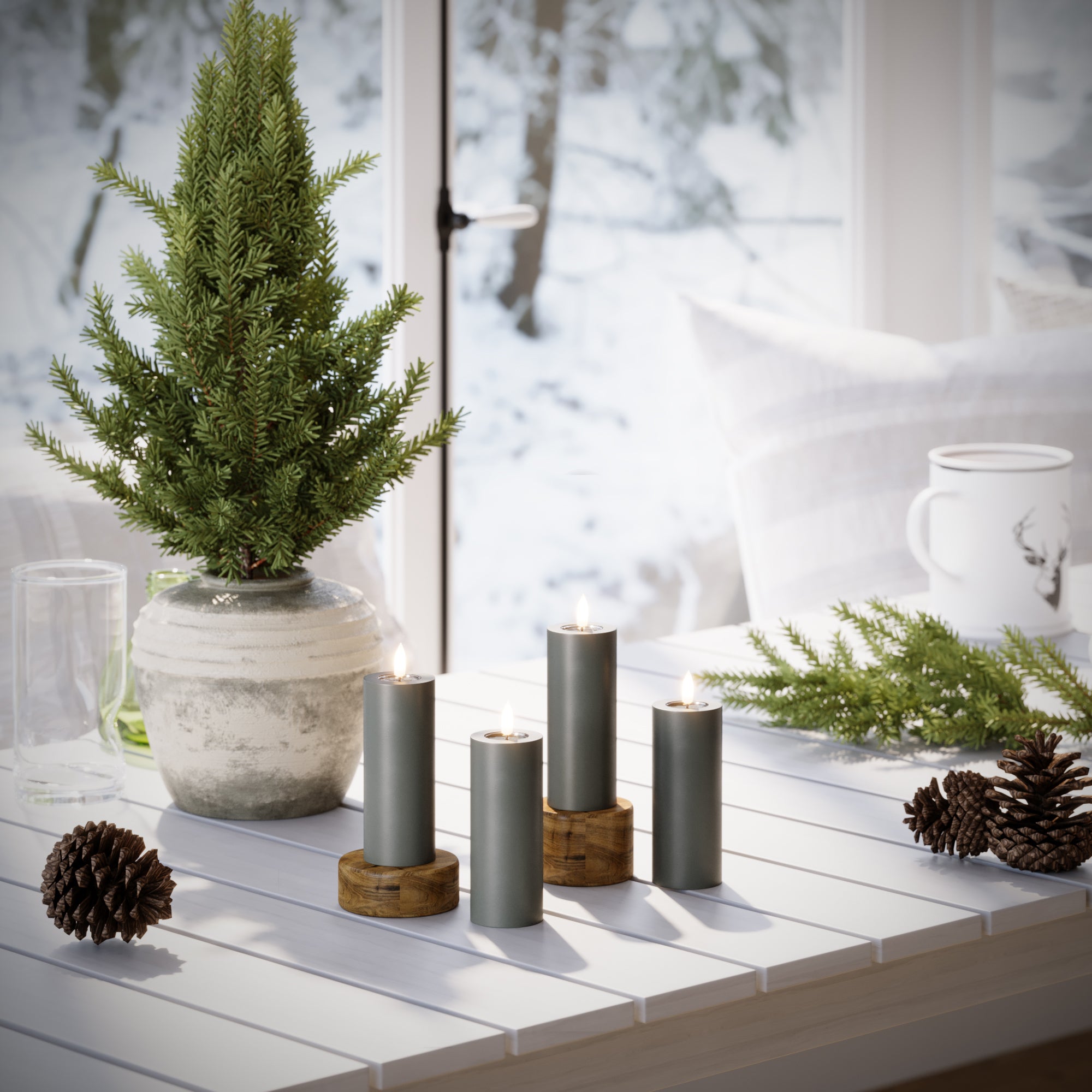 LED-Blockkerzen Ø 5 x 12,5 cm, grau – 4 Stück