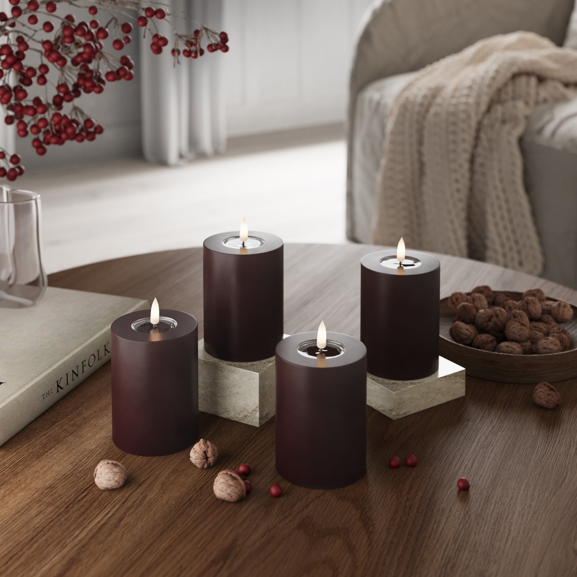 LED-Blockkerzen Ø 7,5 x 10 cm Burgunderrot – 4 Stück
