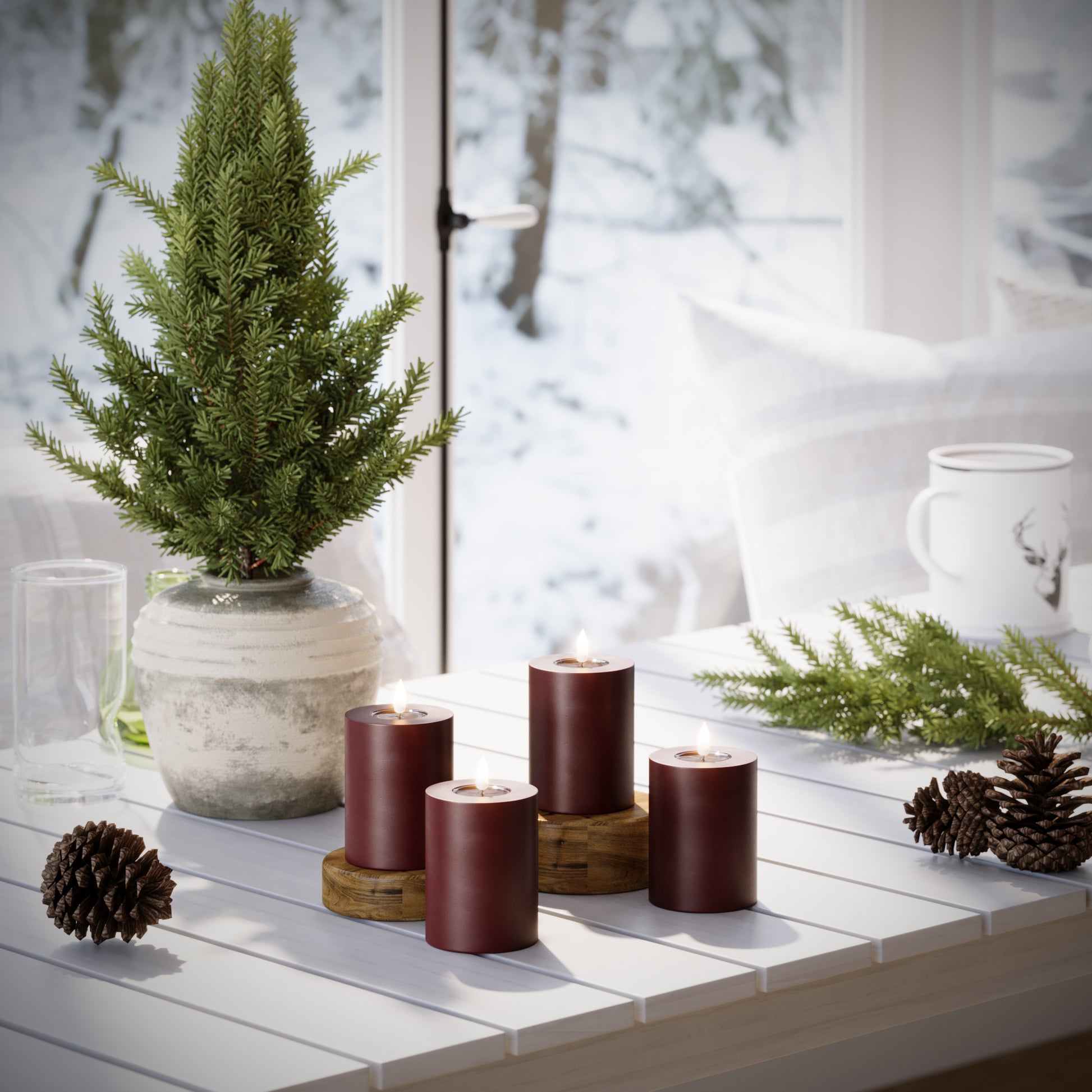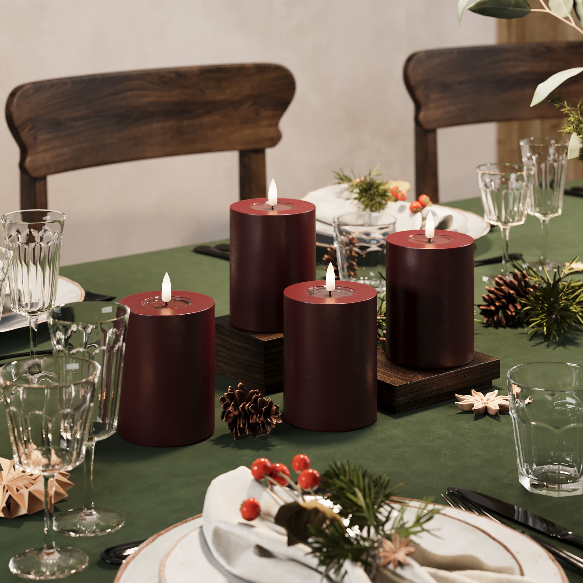 LED-Blockkerzen Ø 7,5 x 10 cm Burgunderrot – 4 Stück