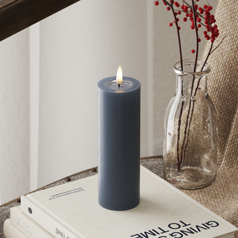 Dette smukke LED bloklys i Isblå er skabt med vores særlige Wetlook™ overflade, der får det til at ligne et ægte stearinlys. Overfladen ligner præcis toppen af et stearinlys der har været tændt, hvilket giver en helt særlig autentisk følelse. Med en højde på 400 cm passer det perfekt ind i de fleste hjem, hvor det spreder hygge og varme med sit naturlige udseende.