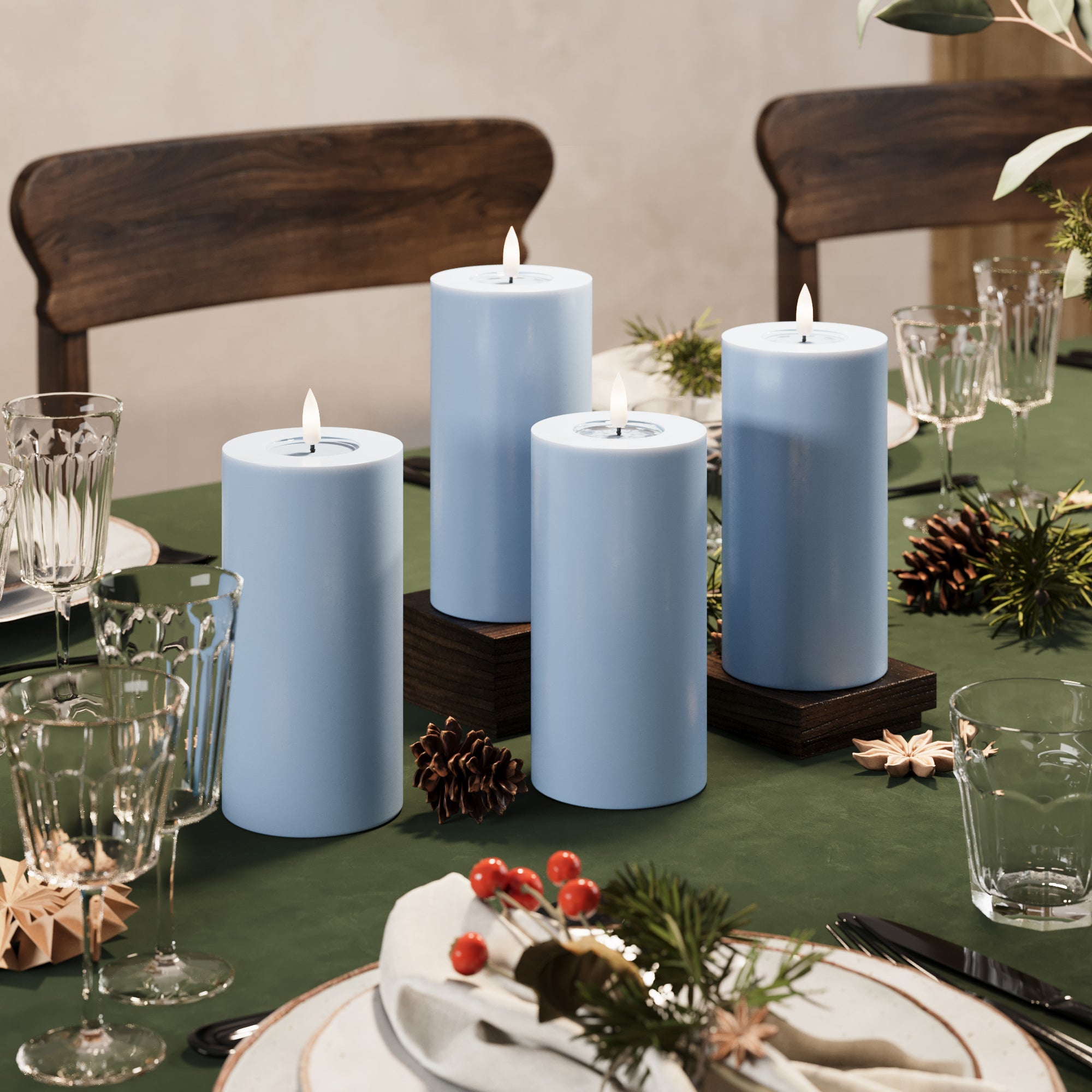 Φώτα μπλοκ LED Ø 7,5 x 15 cm Παγωμένο μπλε - 4 τεμ.