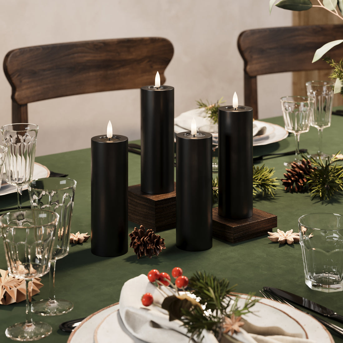 Deluxe Homeart LED Blockkerzen Ø 5 x 15 cm Schwarz LED Blockkerzen 4