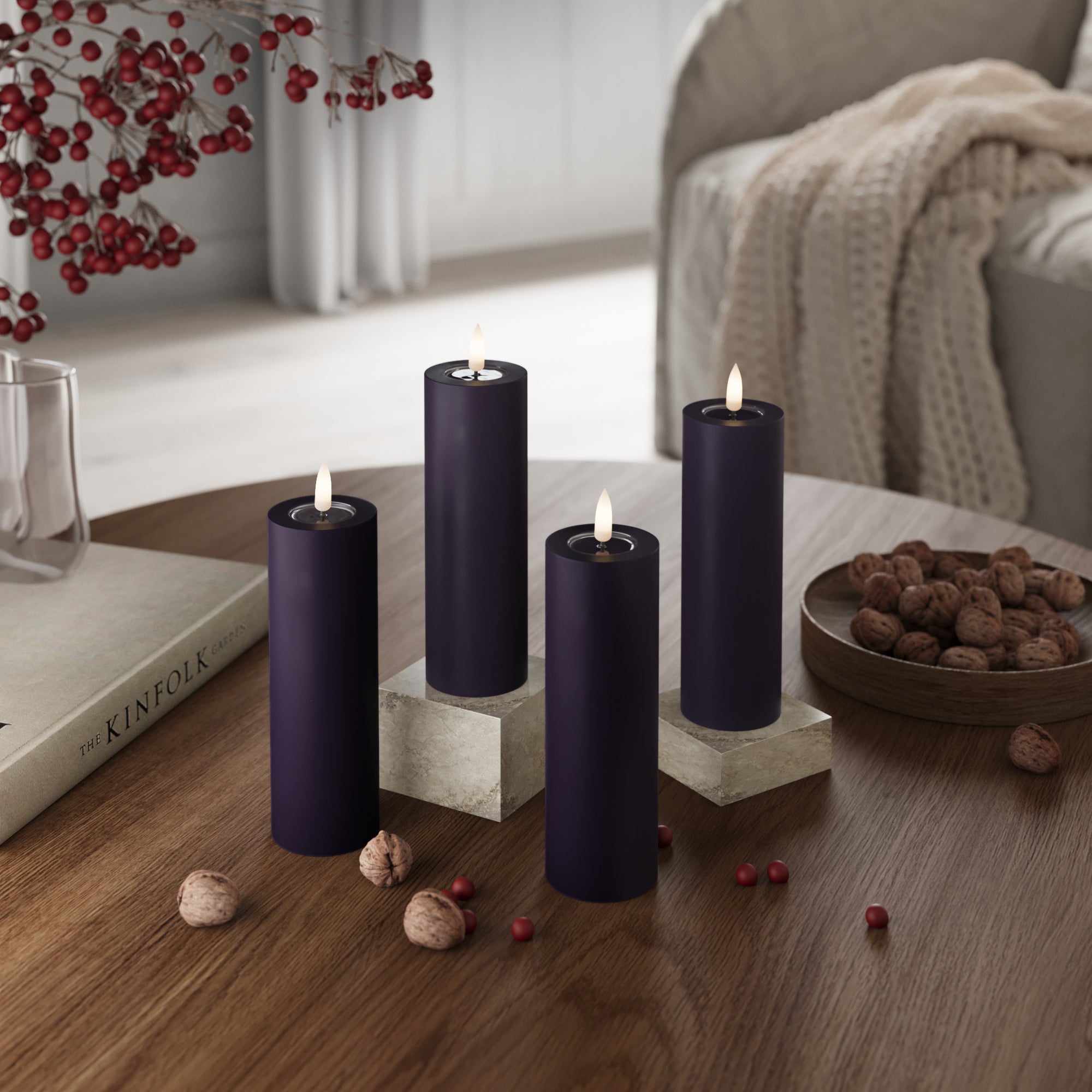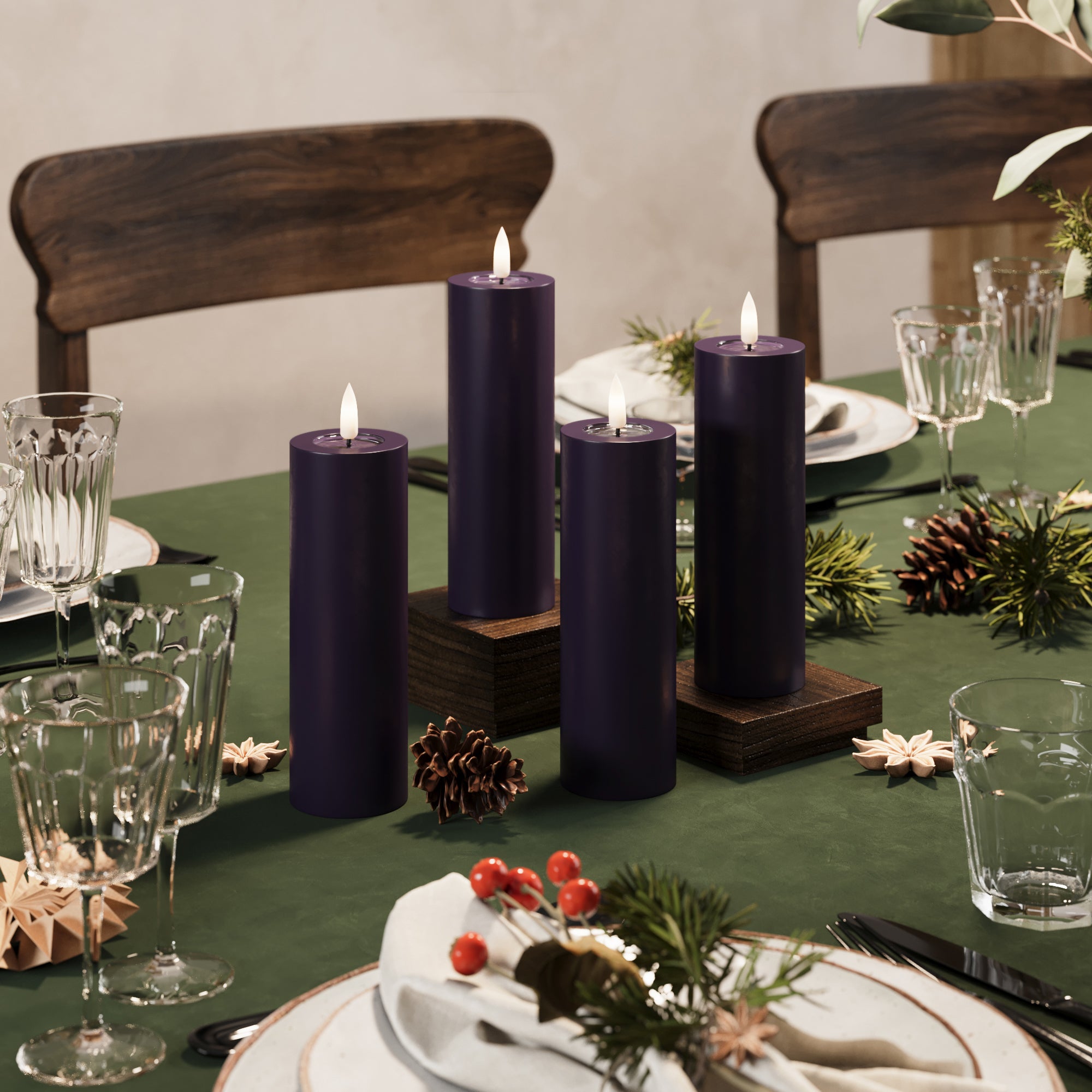 LED Bougie pilier Ø 5 x 15 cm Violet foncé - 4 PCS