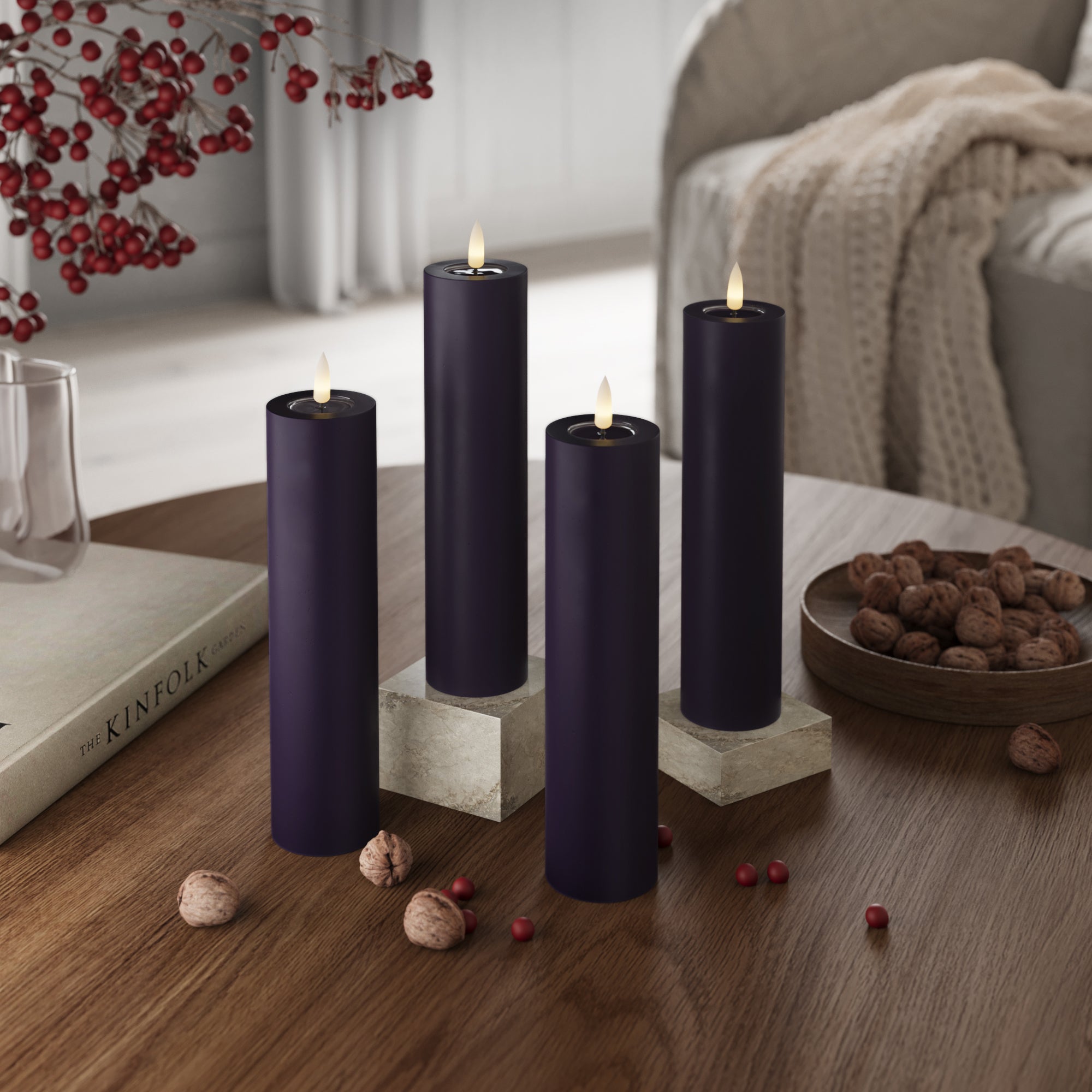 LED Stompkaarsen Ø 5 x 20 cm Donkerpaars - 4 pc's