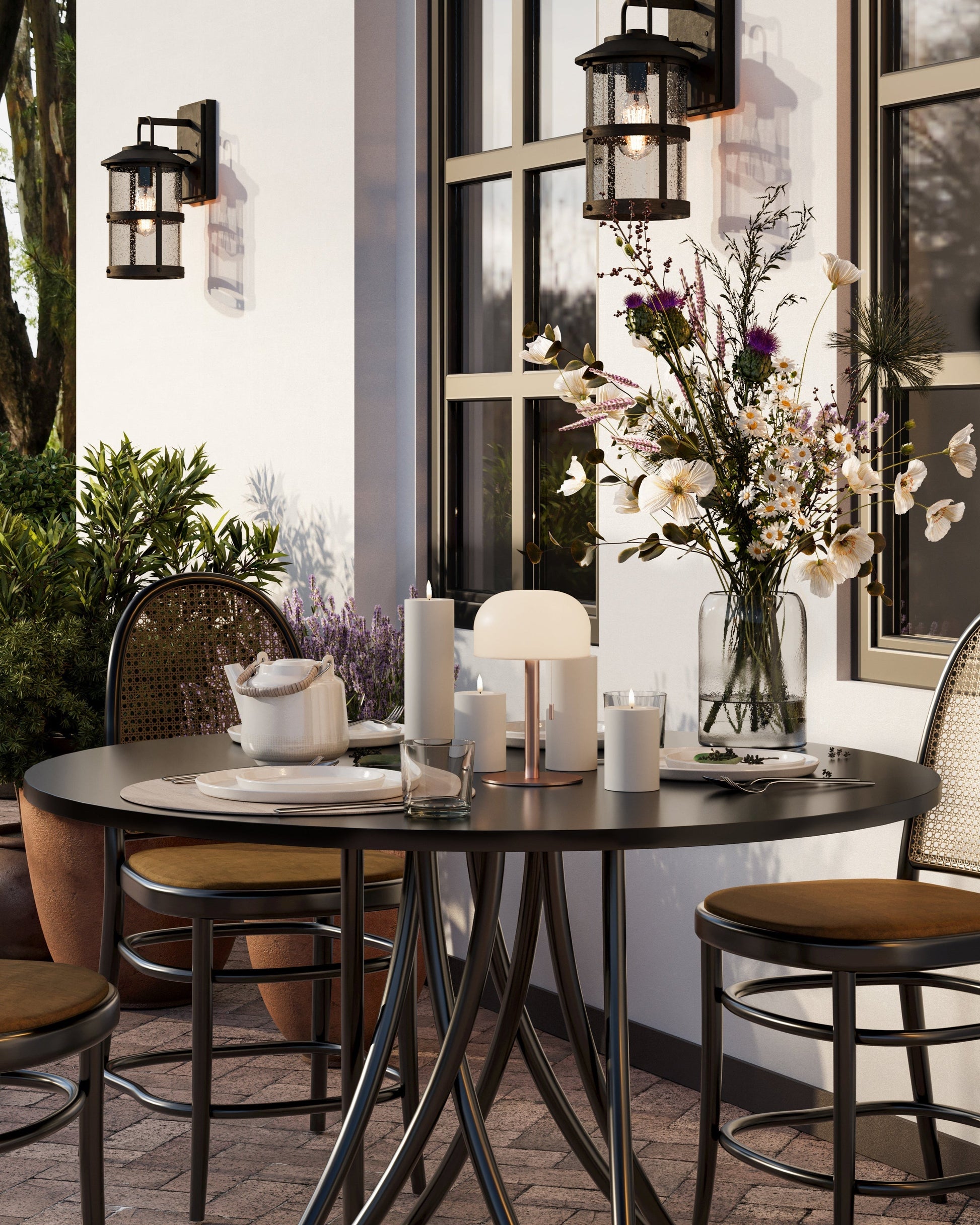 Med sin IP44 -certifiering är lampan också lämplig för utomhusbruk, så att du kan njuta av stämningsfullt ljus på balkongen, i trädgården eller under den öppna himlen.